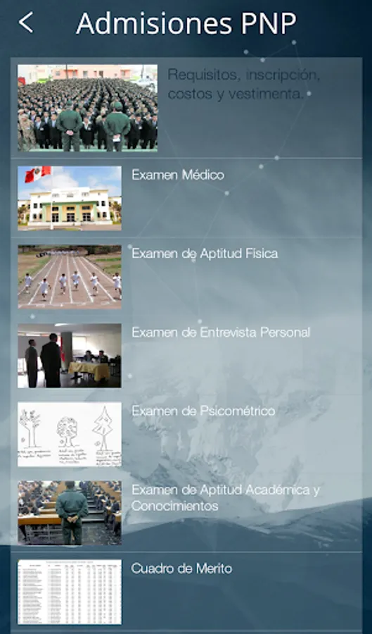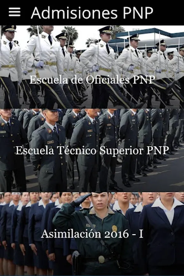 - This application disseminates information related to the Admission Processes of the PNP from the web: https://www.policia.gob.pe/