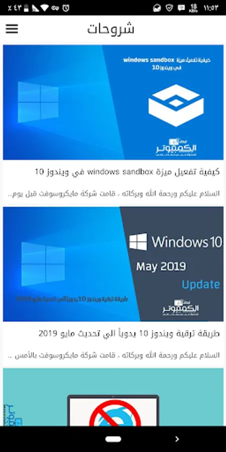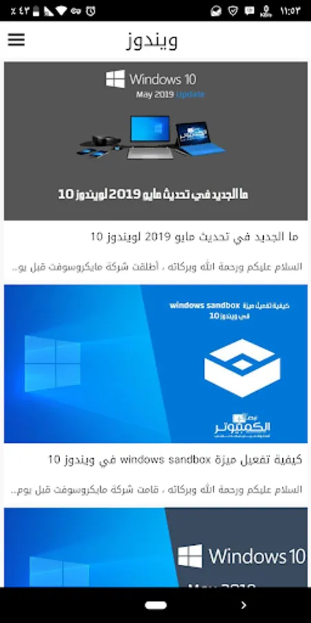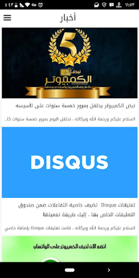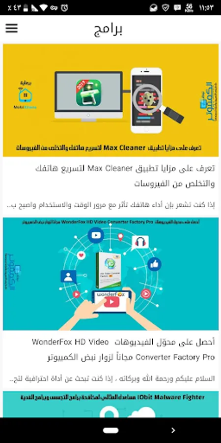 The application is divided into sections on the same pattern sections Blog (Home, News, articles, programs, explanations, technical support, download center)