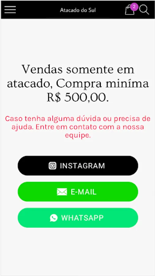 Place orders and purchases directly to '' ATACADO DO SUL '' easily and quickly!