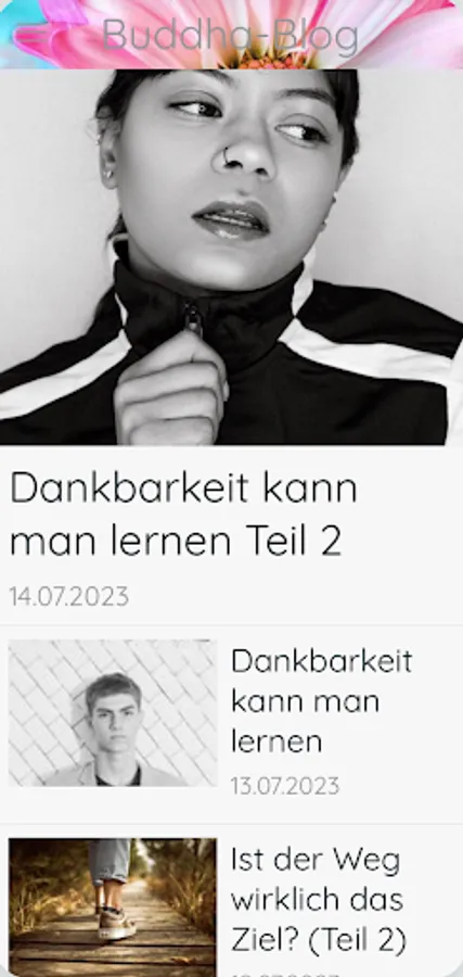 No one is an island, everyone needs a little help from time to time. The Buddha Blog app offers you this help, which is just a click away from you to give you the calm that is difficult to find in the chaos of life. The "Buddha Blog" app is completely free, works without registration, has no in-app purchases and contains no external advertising. The "Buddha Blog" app doesn't get on your nerves, it doesn't want anything from you, but takes you to an oasis of silence, to a completely different world.
