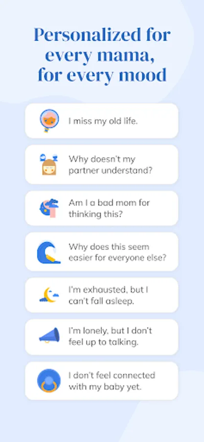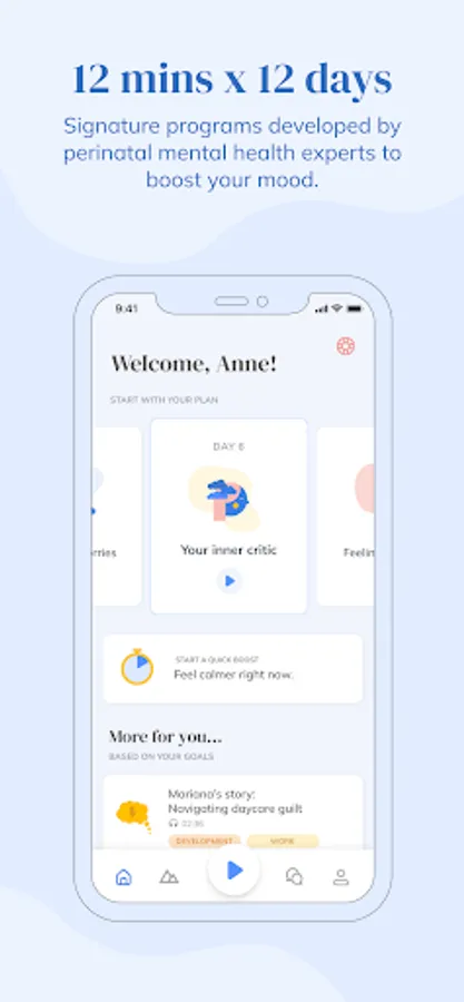 Our curated sessions are personalized for your unique goals, using an expert-formulated and mom-tested blend of clinically-validated therapies proven to prevent and treat postpartum anxiety and depression. Every program will help you gain specific knowledge, tools, and skills to positively transform your behaviors so you begin to find inner calm in spite of the outer chaos that goes along with parenting. As you find relief from stress and anxiety, you’ll cultivate more patience, joy, and energy and see improvements in your life beyond your mood.