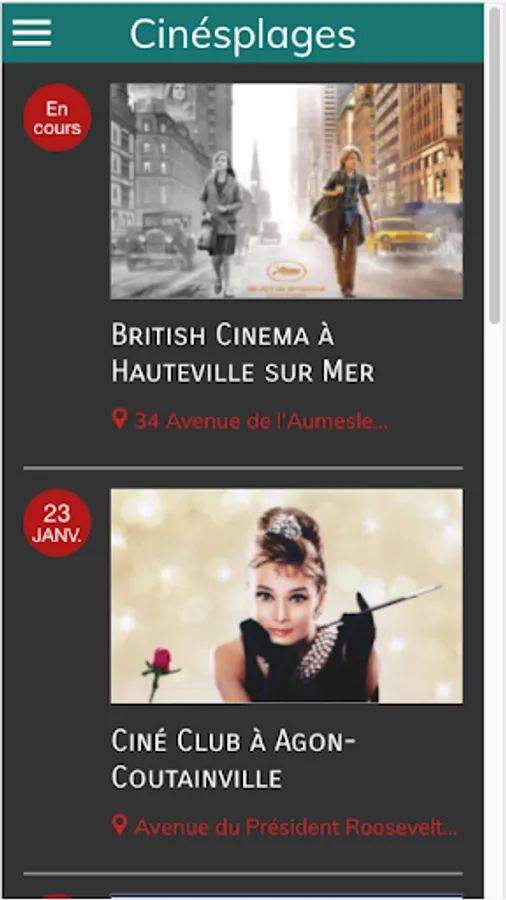 Vous trouverez sur cette app le programme de nos trois cinémas : le cinéma de la Plage à Hauteville sur mer, le cinéma Le Cotentin à Pirou et le cinéma L'espace à Agon-Coutainville. Tous les films, les animations, le programme sont ici.