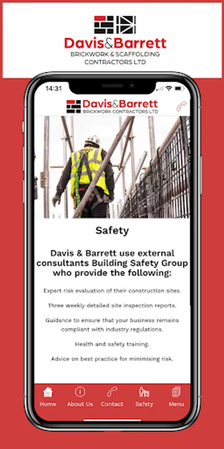 Davis & Barret are specialist Bricklaying and Scaffolding Contractors based in the South West of England. This APP is designed to ensure all specific Compliances are met with the building trade, improve efficiencies with our clients and exceed quality standards in the contracts we manage on a day to day basis.