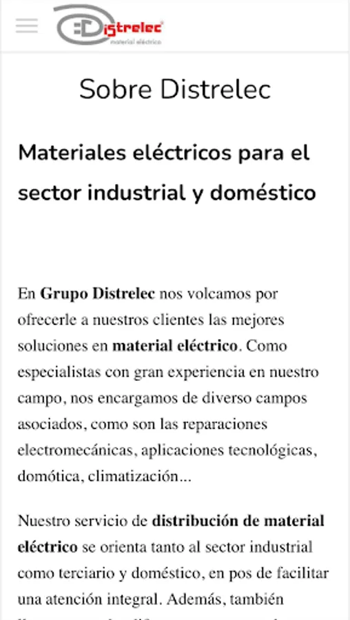 At Grupo Distrelec we are dedicated to offering our clients the best solutions in electrical equipment. As specialists with extensive experience in our field, we take care of various associated fields, such as electromechanical repairs, technological applications, home automation, air conditioning...