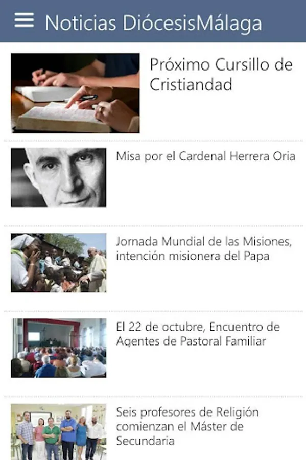 The app DiocesisMalaga made by the Delegation of the Media of the Diocese of Málaga, is a fast, easy and effective way to keep abreast of the latest news from the Church in Malaga Average.