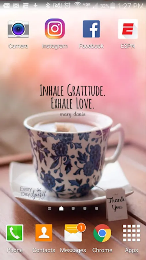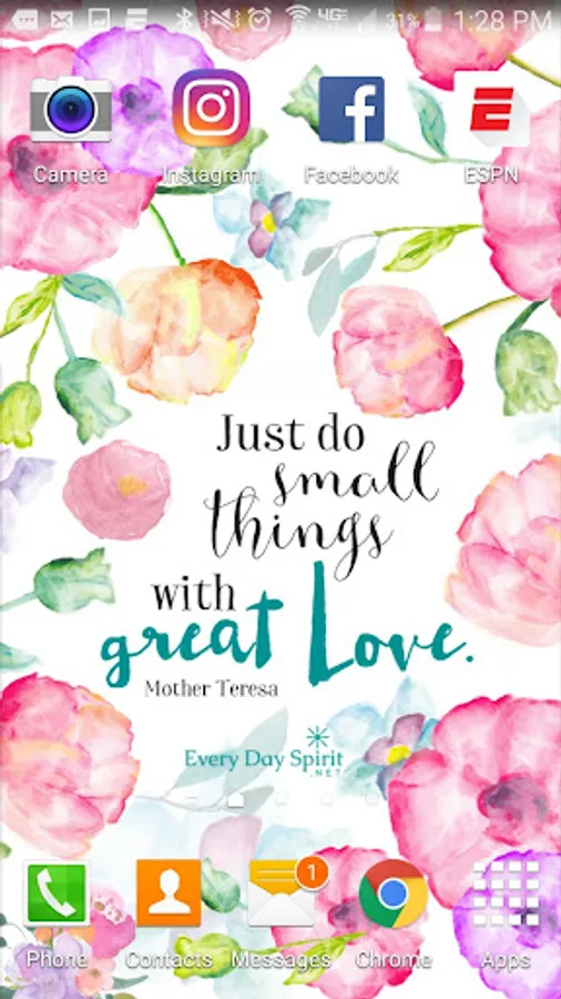 Every Day Spirit is a collection of 1000 beautiful, original, hand-crafted wallpapers created to make your phone look amazing AND inspire you with positive and inspirational messages of love, hope, peace and joy.