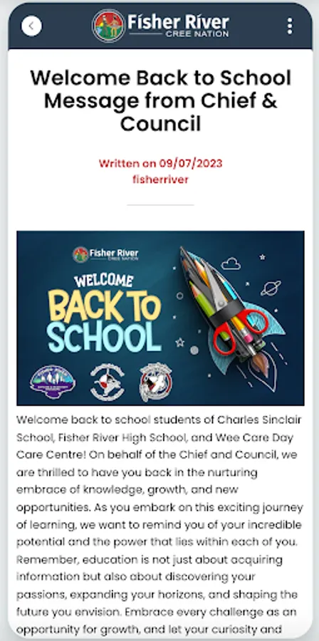 Fisher River Cree Nation is a community in which our history, language, traditions, and culture are paramount to who we are as a people. We will protect and maintain the spirit and intent of the treaties and our inherent rights. Fisher River will be a self-sustaining progressive community with a strong and accountable government. We will provide an environment where all people are healthy, safe, and respected.