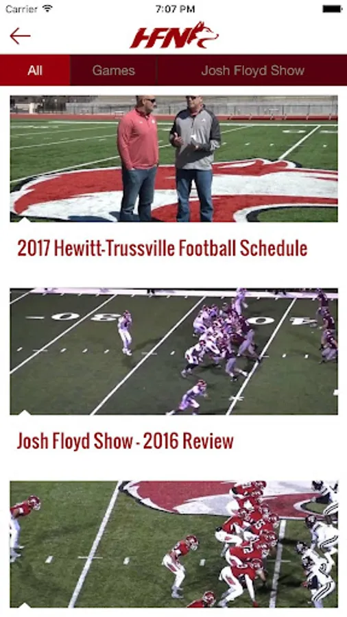 - On-Demand video archives including previous broadcasts, highlight clips, post-game interviews, and halftime performances of the Hewitt-Trussville Marching Band
