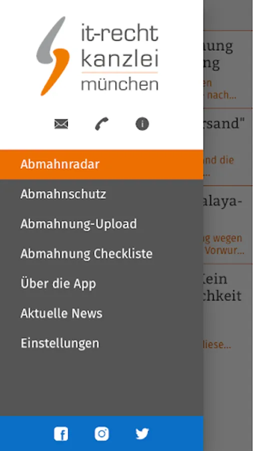 This app informs you by means of a push message promptly about current warnings; In this way, you are alerted quickly and reliably and, if you are affected by the risk, can initiate targeted countermeasures. In addition, the messages usually include links to specific tips and instructions on how to deal with the identified risks. So you are always well informed and protected from warnings. Notes on activation can be found on the client portal. The use of the app is only possible in conjunction with a for client account of IT law firm Munich.