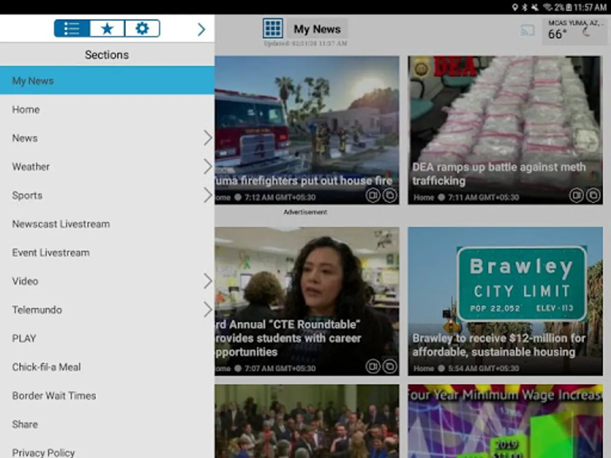 The KYMA KSWT KECY app provides instant access to the latest local news, custom weather forecasts, traffic updates, and local sports for the Yuma, AZ / El Centro, CA region.