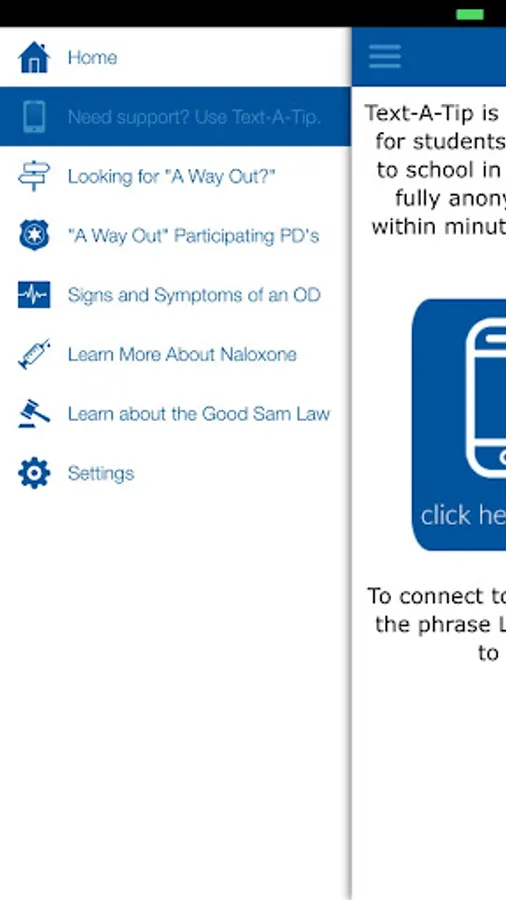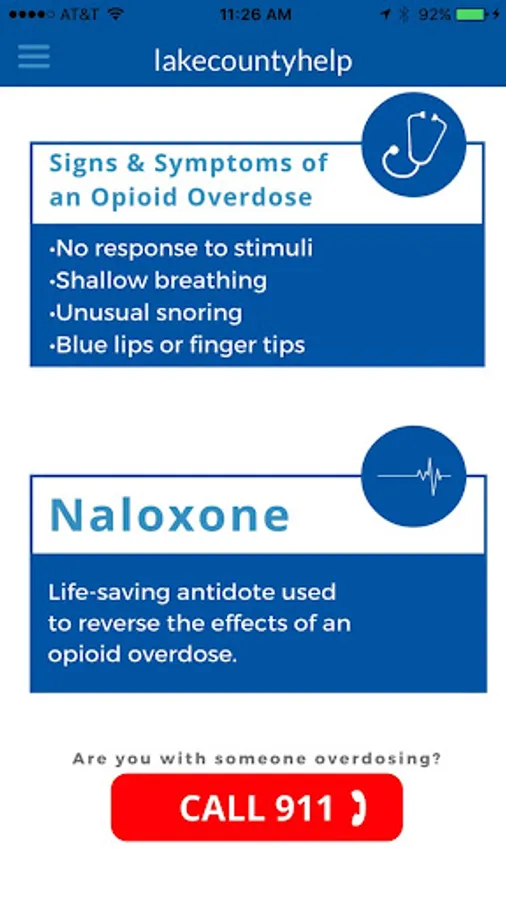 LakeCountyHelp is an app intended for residents of Lake County, IL and surrounding communities. Included in this app is access to a 24/7 anonymous text crisis line (Text-A-Tip), access to the law enforcement assisted diversion drug treatment program (A Way Out), signs and symptoms of an overdose, and information about Naloxone (Narcan) and the Illinois Good Samaritan law.