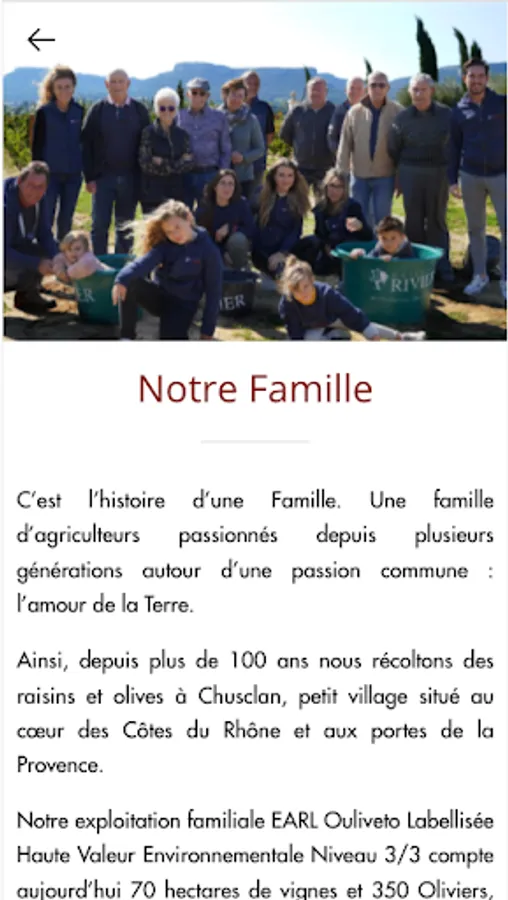 The "Maison Rivier" application offers you the possibility of consulting all the information of the vineyard, but also of discovering and ordering our Côtes du Rhône wines, as well as our tickets which give you access to our events.