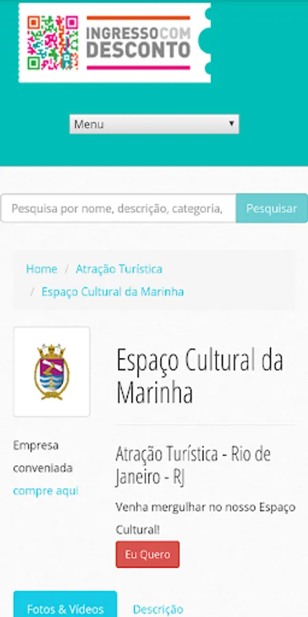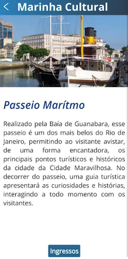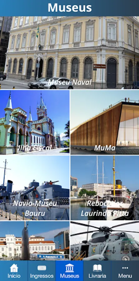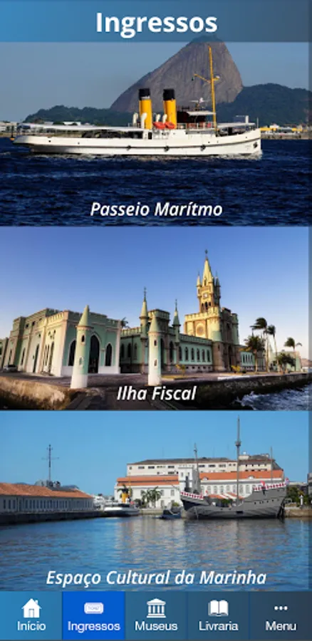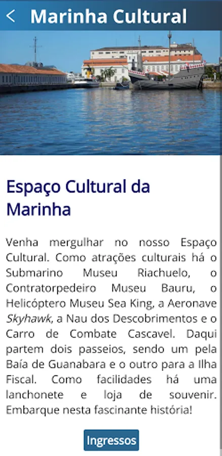 APP designed to publicize the main attractions of the Cultural Space of the Navy, the Naval Museum and the Fiscal Island including the sea tours, with the possibility of buying tickets online. Also presented are the main services offered by the Navy library, Navy Archive and SDM Publisher.