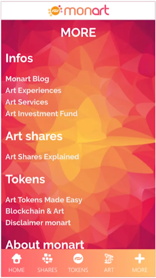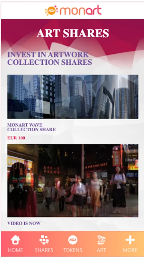 Invest in art. Buy shares of artworks and collections curated and certified by experts, secured on the Blockchain. Discover art with Monart 3D Museum, 3D visit of artist studios and more.
