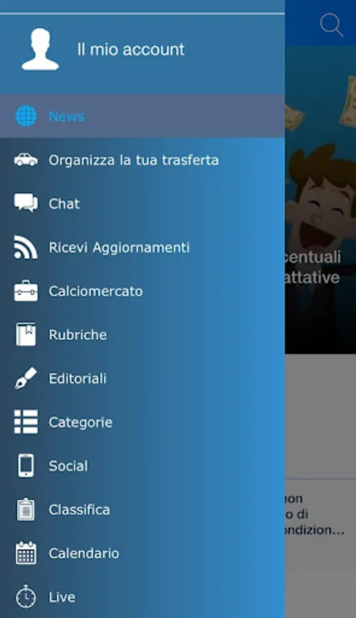 Open the menu on the left and discover all the categories that our editorial staff takes care of every day for the many blue fans.