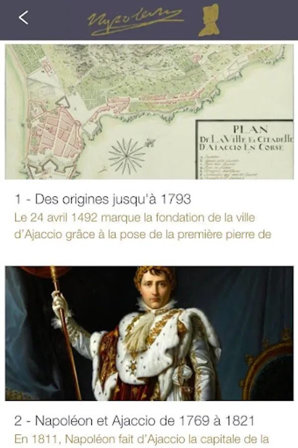 The "Napoleon in Ajaccio" traces the history of Napoleon Ajaccienne.