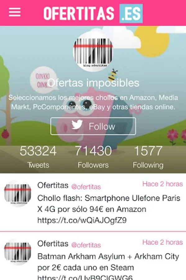 The objective of Ofertitas is to locate quality products at the best price, to make them known through the blog, social networks and the app itself, always watching over the consumer's interest.