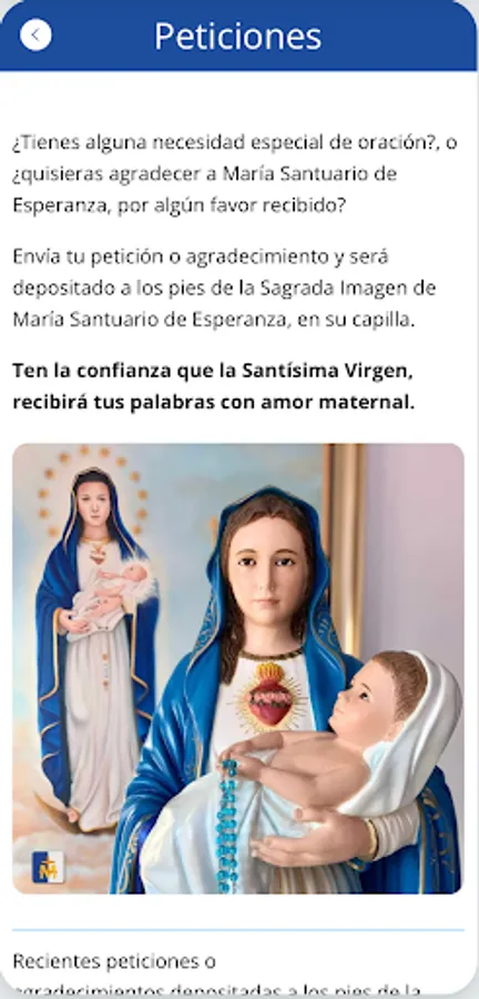 A través de esta aplicación puedes enviar tus peticiones de oración, para ser incluidas dentro de las intenciones semanales de oración.