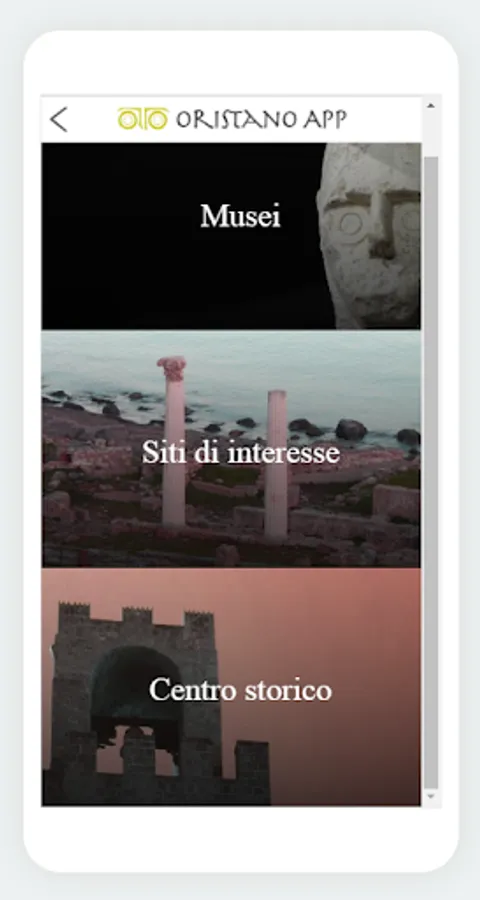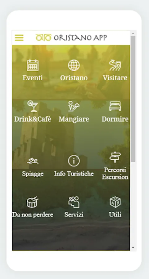With a simple and intuitive interface it provides information on the delightful historic center of Oristano, the best beaches, clubs and events, typical food, history and everything that revolves around the city of Eleonora.