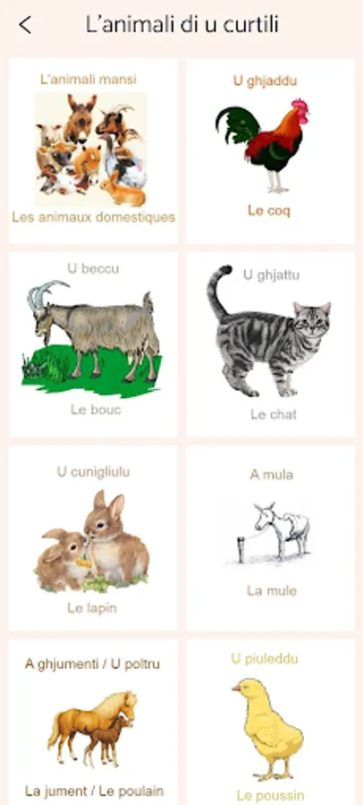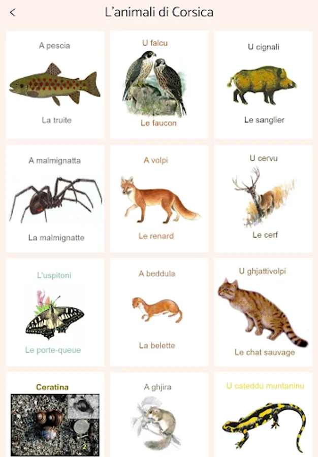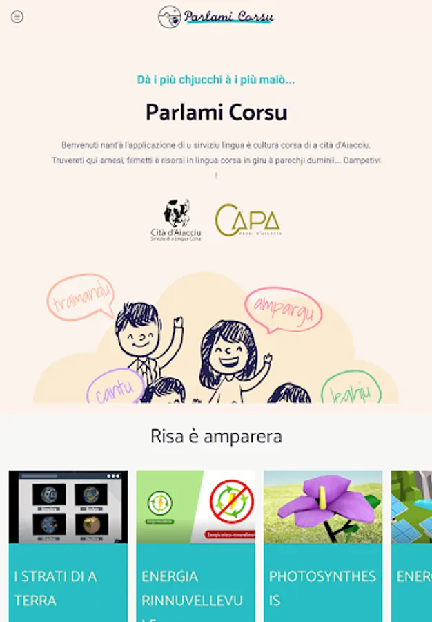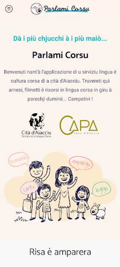 The Parlamicorsu application will allow you to access a database of more than 30,000 translated words. A conjugator will also help you in your learning. A Zitellina section will accompany you around multiple videos in the Corsican language.