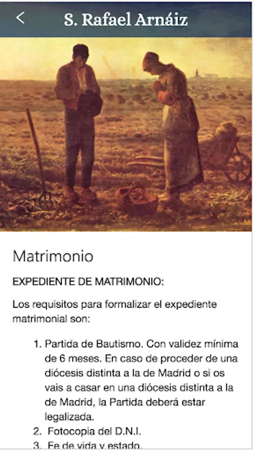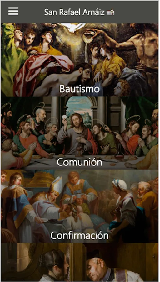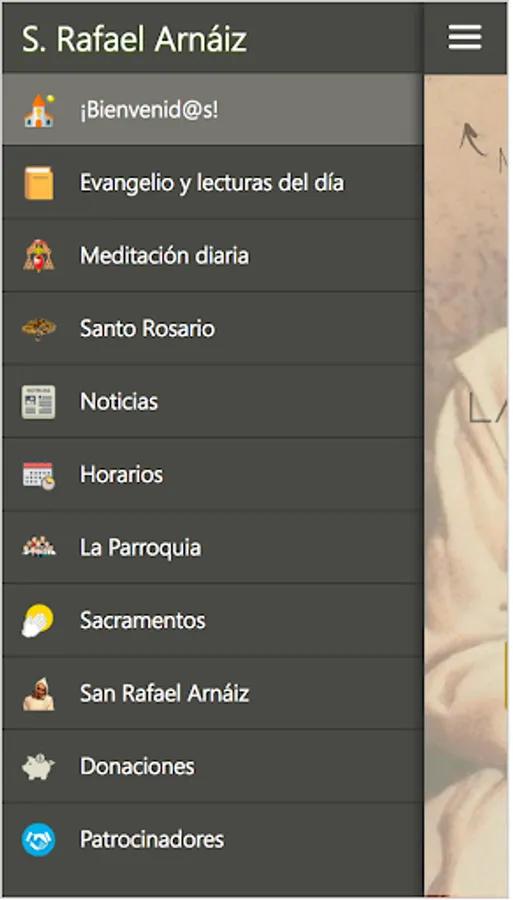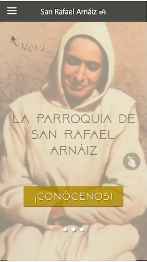 This is the application of the Parish of San Rafael Arnaiz. Here you will find sections like "Gospel reading of the day", "Daily Meditation", "Schedule", "News", "La Parroquia" ... sections, finally, looking to offer users content to pray and useful information on the parish. Located in Madrid, our dream is to create a parish where everyone feels at home, where everyone is valued and we give ourselves to the service of our brothers and to evangelize with the whole head and heart on Christ, our Lord.
