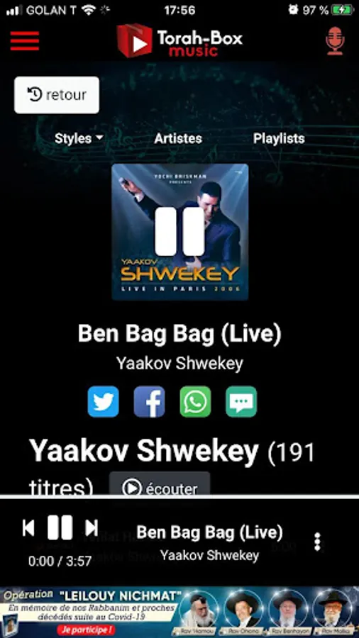 Find every day 1 hour non-stop of Mizra’hi music (11h) and 1h non-stop of the last hits of jewish music (16h). And every Friday, special Chabbath music at 11 a.m. and 1 p.m.