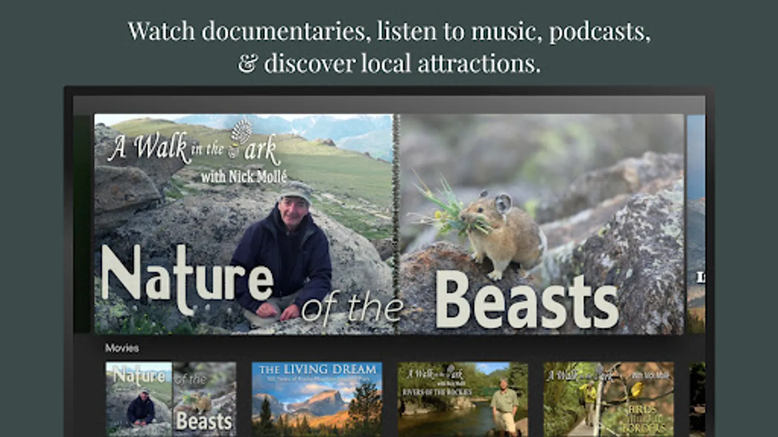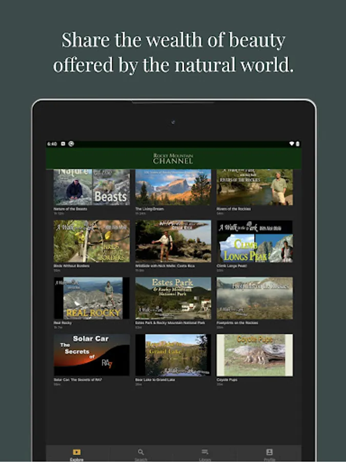 From award winning documentaries to music in the mountains, this is adventure with a conscience. Experience a place where art and science confess their identity as twins. These are the stories of the science, the emotions, and the economics of conservation in a place where ecotourism is a way of life. This is the Rocky Mountain Channel.