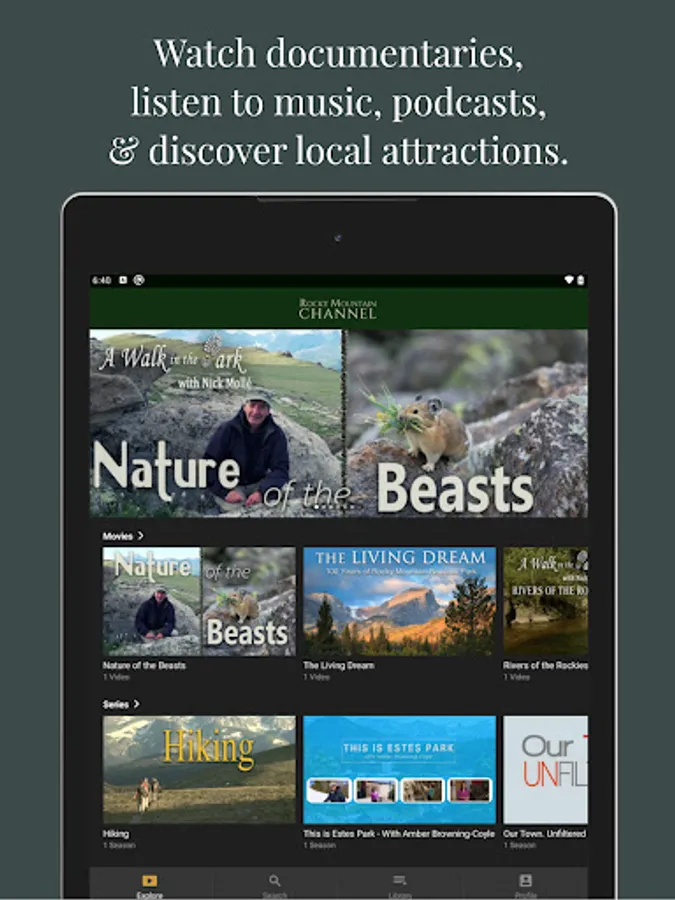 We strive to offer you exemplary programming on an ongoing basis. Share the wealth of beauty offered by the natural world, the aesthetics, the science, and the stories. Enjoy original music from regional artists as presented here in this mountain setting. In addition to a trove of documentaries long and short, featured insights, countless hikes, and music specials, bring Estes Park home on the live stream as it broadcasts everyday on channel 8 and 108 on this, the new Rocky Mountain Channel.