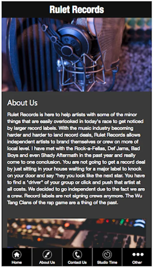 Interaction app designed for musicians, bands, artists, producers and promoters. An app that allows an access to an artists whole portfolio in one place. Perfect for press kits and advertising. The Rulet Records app keep the studio in front of its artists through their daily device.