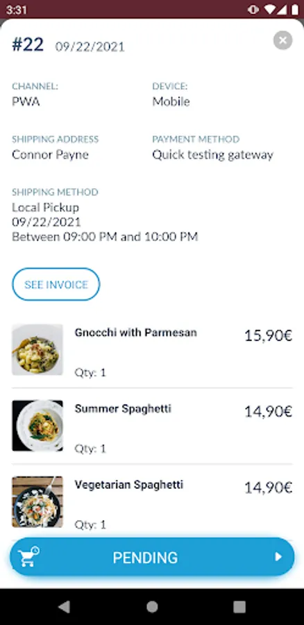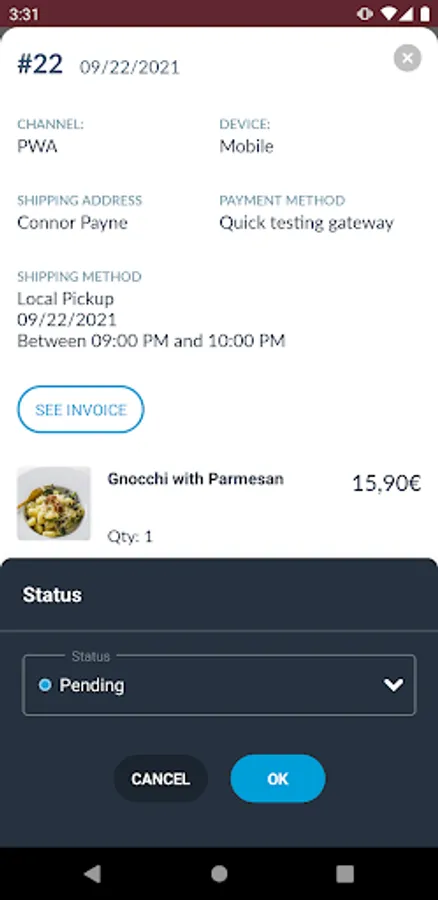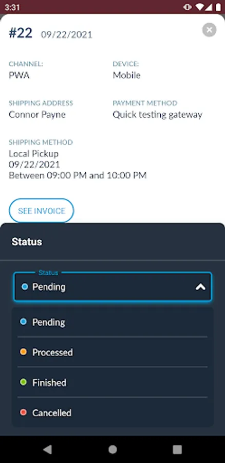 - Order management: update the status of your orders instantly from your phone: processed, finished, closed.
