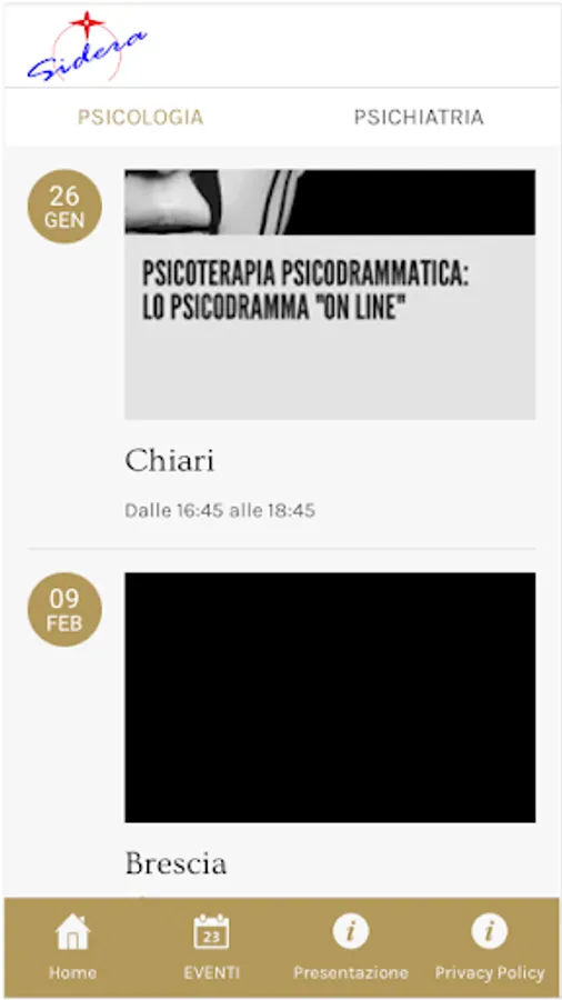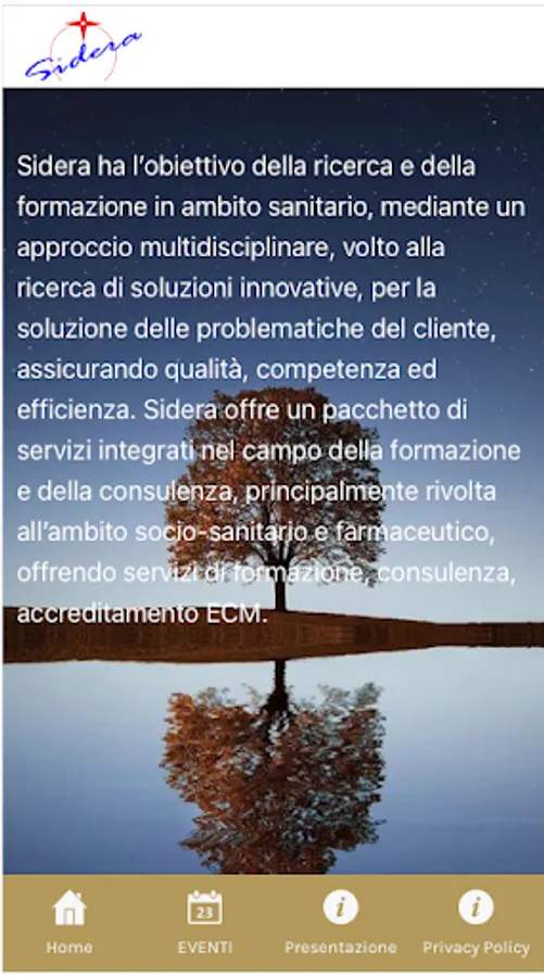 Sidera is a national provider accredited to the Continuing Medical Education system. The App lists the courses organized and accredited by Sidera. You can view the program and the registration link.