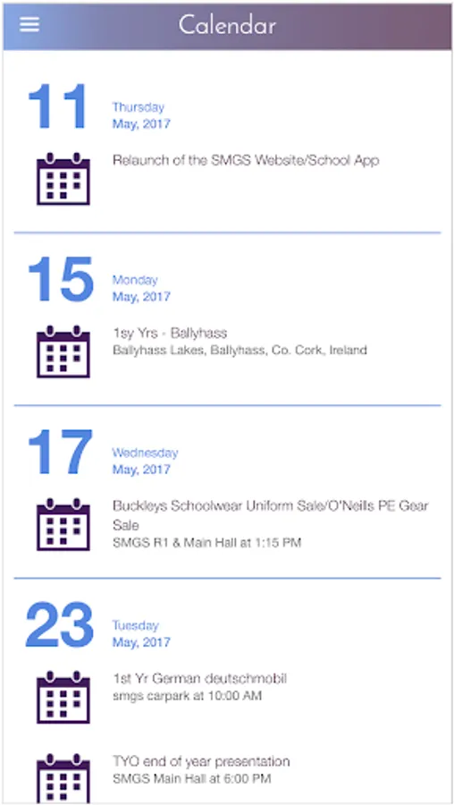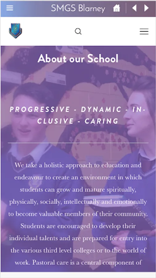 SMGS Blarney Secondary School app - receive and read the latest school news, events, notifications and information about the school. Contact the school from within the app, view the latest school videos and photos, connect with the school via facebook and Instagram as well as process VS Ware payments and browse the school's mobile friendly website, all from within the app.