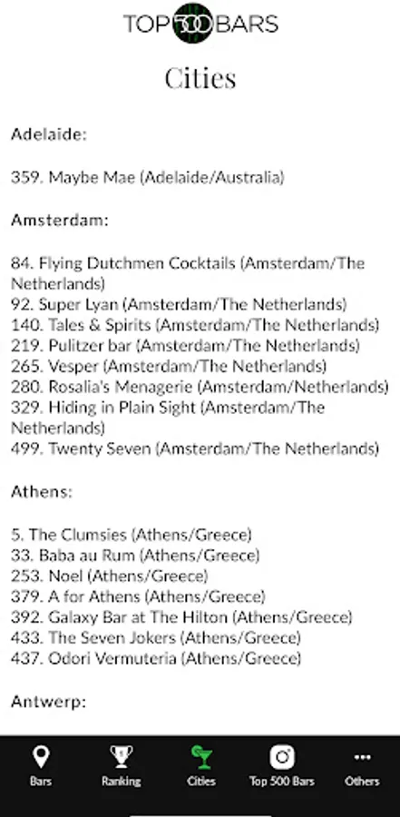 Every year, with the release of a new ranking, all the information are updated. You have access to the full ranking and it is accessible as well city by city to have an overview and help you to prepare your visit. Soon new possibilities, like being aware of events in these bars if you are in the same city.