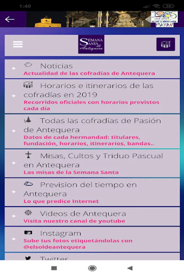 Up-to-date images of all the brotherhoods, history, routes, timetables, the time it will take that day, videos, social networks, news, cults ... When does the procession start today? Where is it going? Be informed at once with this intuitive and easy-to-use application