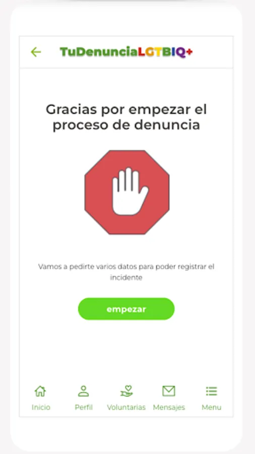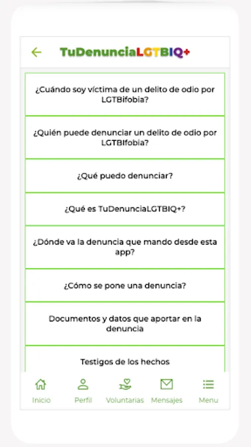 - LGTBI complaint: Report any hate crime based on sexual orientation, expression or identity from this app and totally anonymously.
