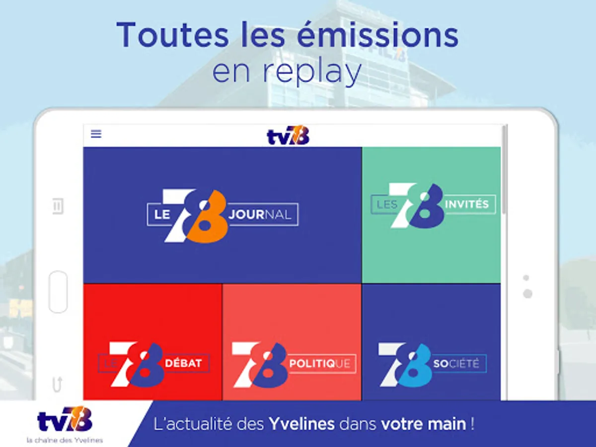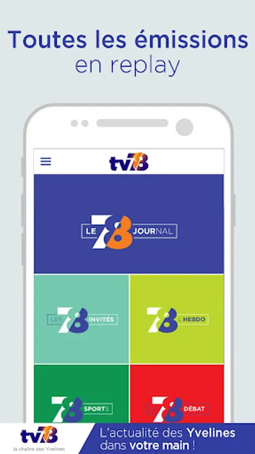 The TV78 application can be used in France. Some live or replay programs may be unavailable due to legal restrictions.
