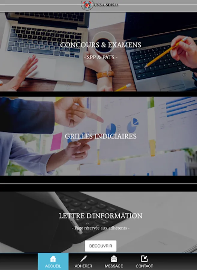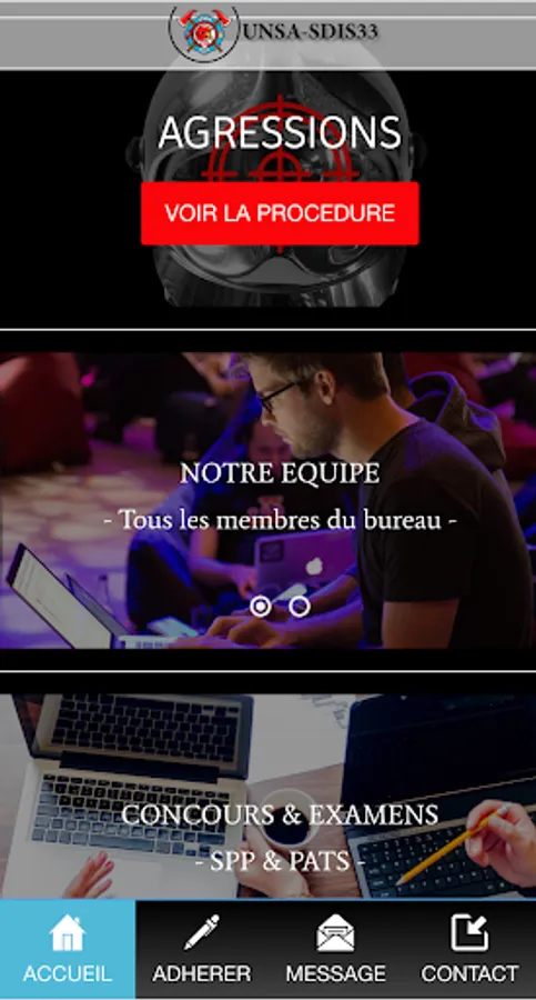 The smartphone application of the UNSA-SDIS33, the majority union and reformist firefighters & PATS of the SDIS of Gironde, will allow you to: