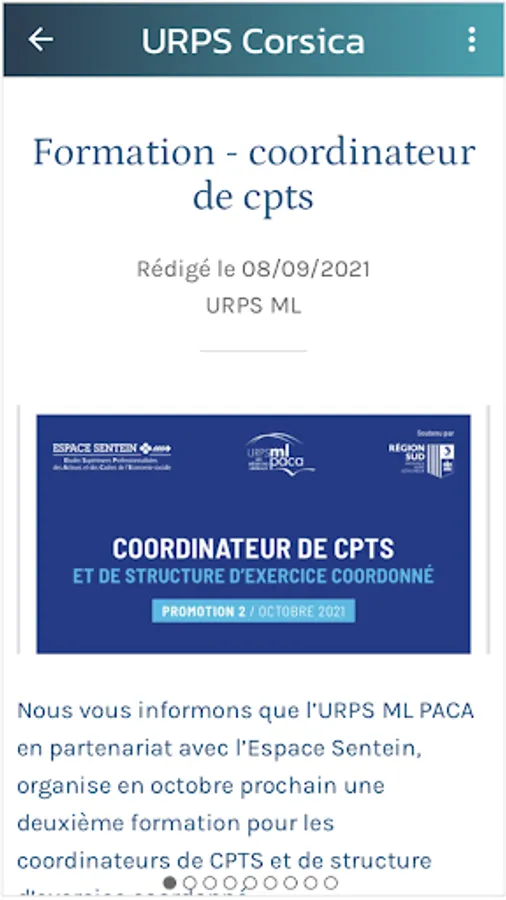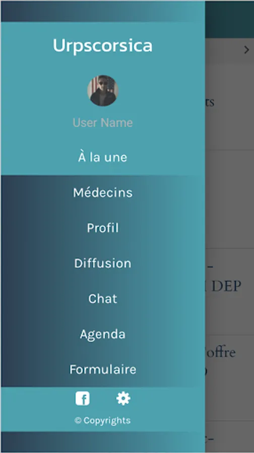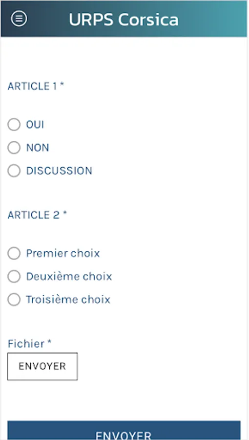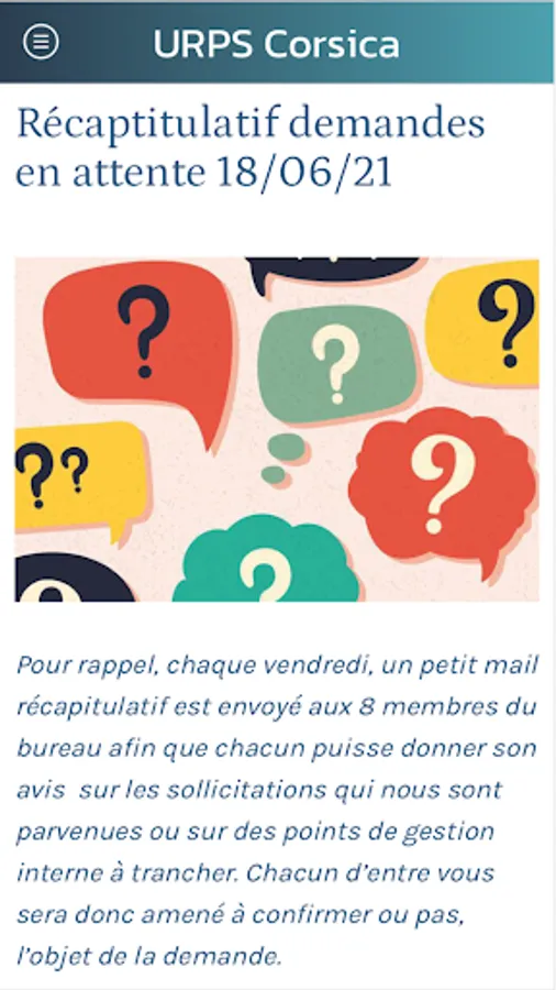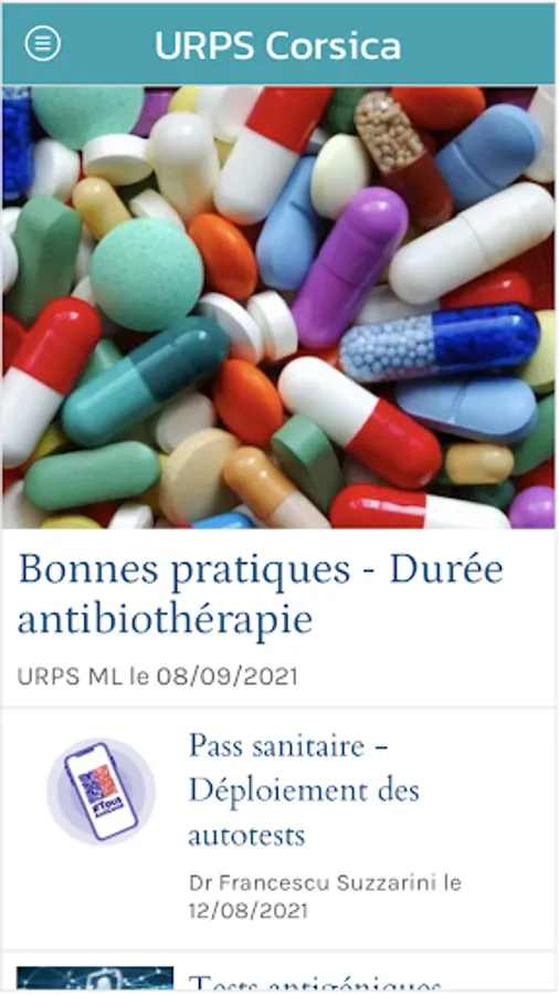 The URPS Corsica mobile application aims to strengthen the link between the Unions and health professionals. Due to its ease of use and access, the application organizes the information usually transmitted by email.