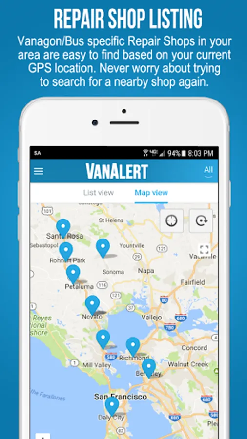 We have a database of reputable repair shops that know how to work on these classic vehicles. Say for instance, if you break down, simply open the VanAlert app and click on the Repair Shops icon. A listing of crowdsourced repair shops that other Vanagon/Bus owners have used and recommend that are in the area will show up based on your current GPS location. All of the contact info is there at your fingertips.