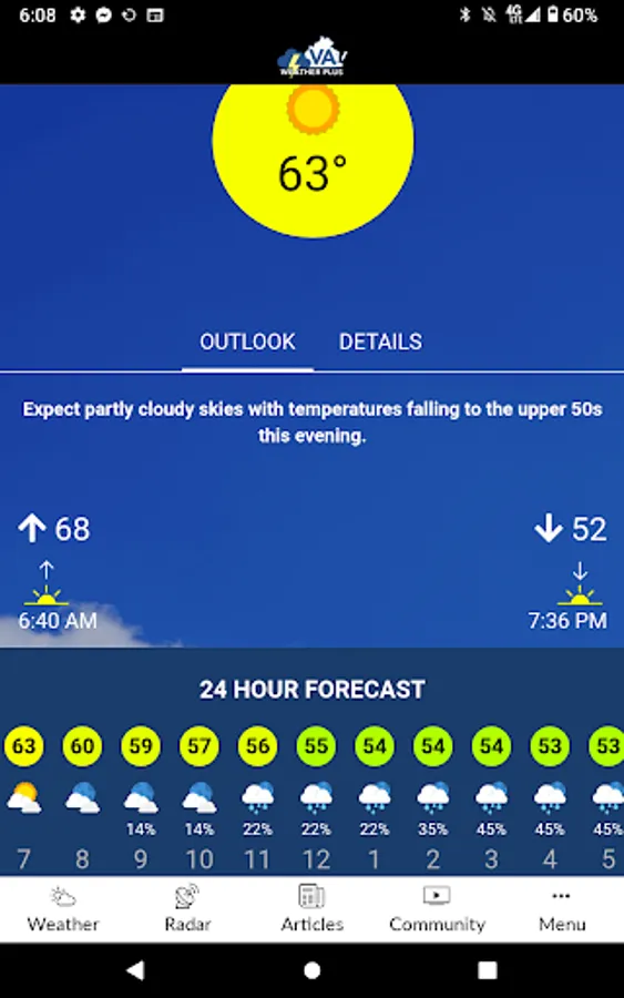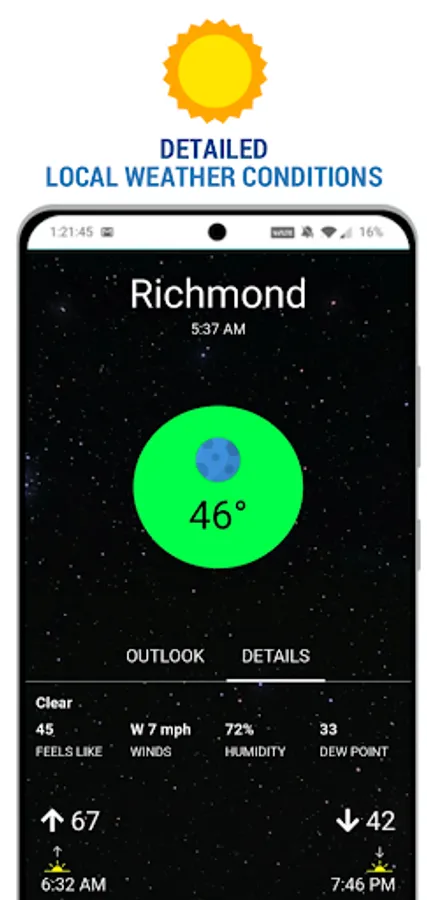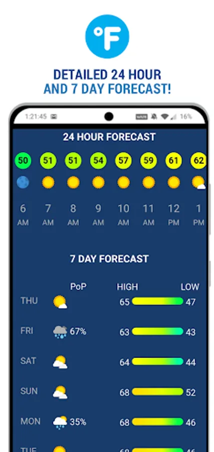 - Detailed 48 hour forecast, including sky conditions and precipitation chance