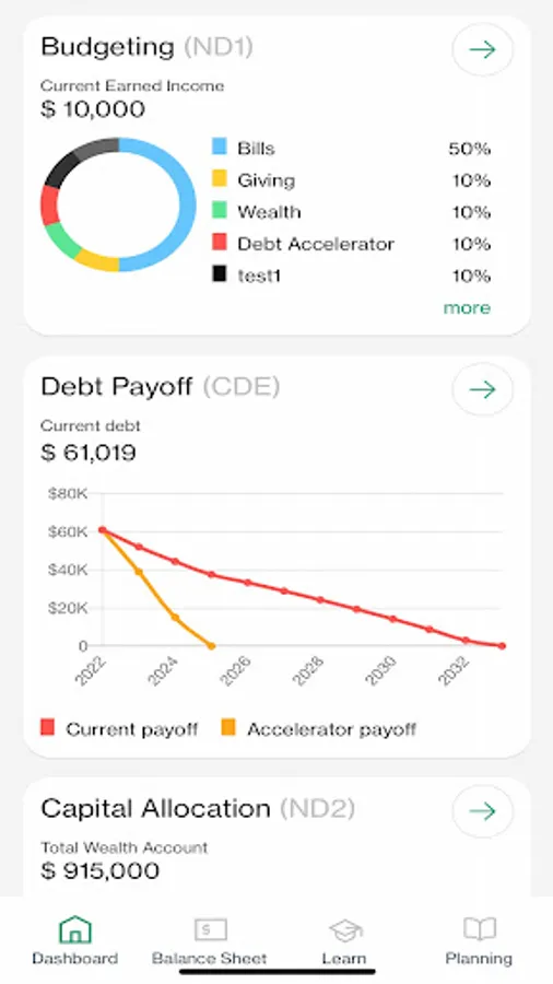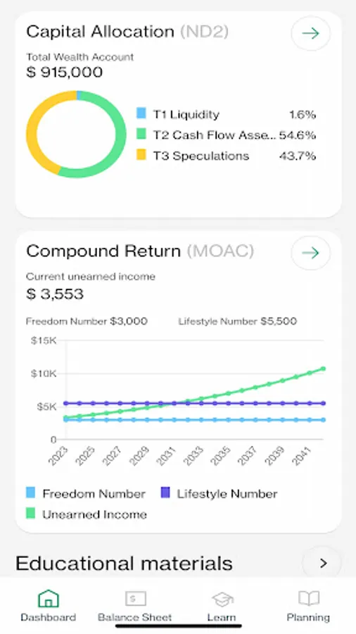 - Set earned income and unearned income goals, Identify your Freedom & Lifestyle Numbers, track progress, completely wipe out debt in record time (comprehensive debt payoff plan), model what the wealthy do, use rules based systems, build a fortress balance sheet (comprehensive compound asset growth forecasting)
