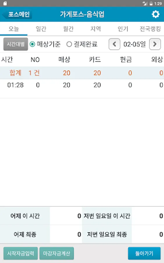 ■현재시간 누적매상액을 어제 동일한 시간과 지난주(같은 요일) 동일한 시간과 비교 ■신용카드 현금영수증 순수현금 전자화폐 등 결제수단별 집계 기능