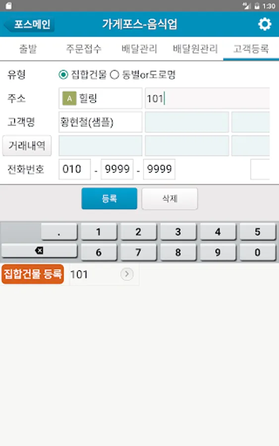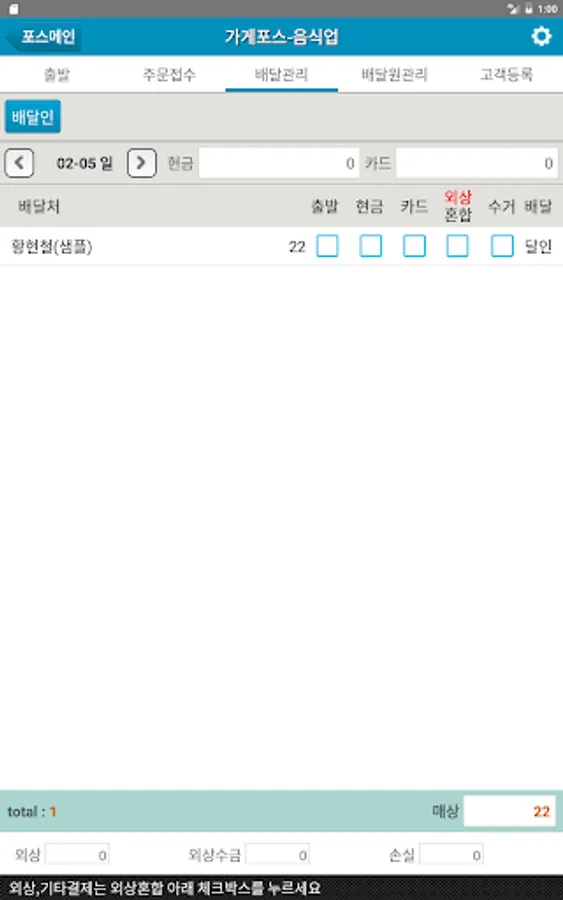 ■배달음식업의 경우 동별,아파트별 매상집계 기능 ■시작자금 입력 및 마감자금 계산 기능
