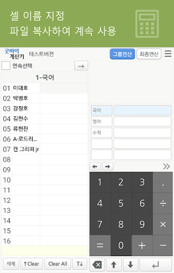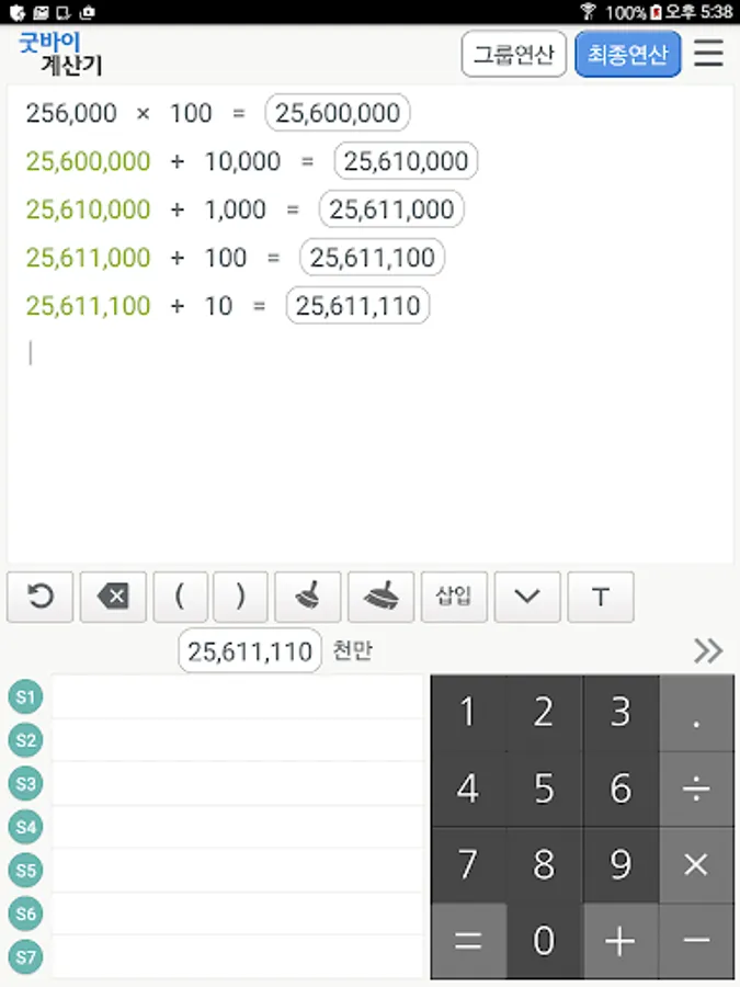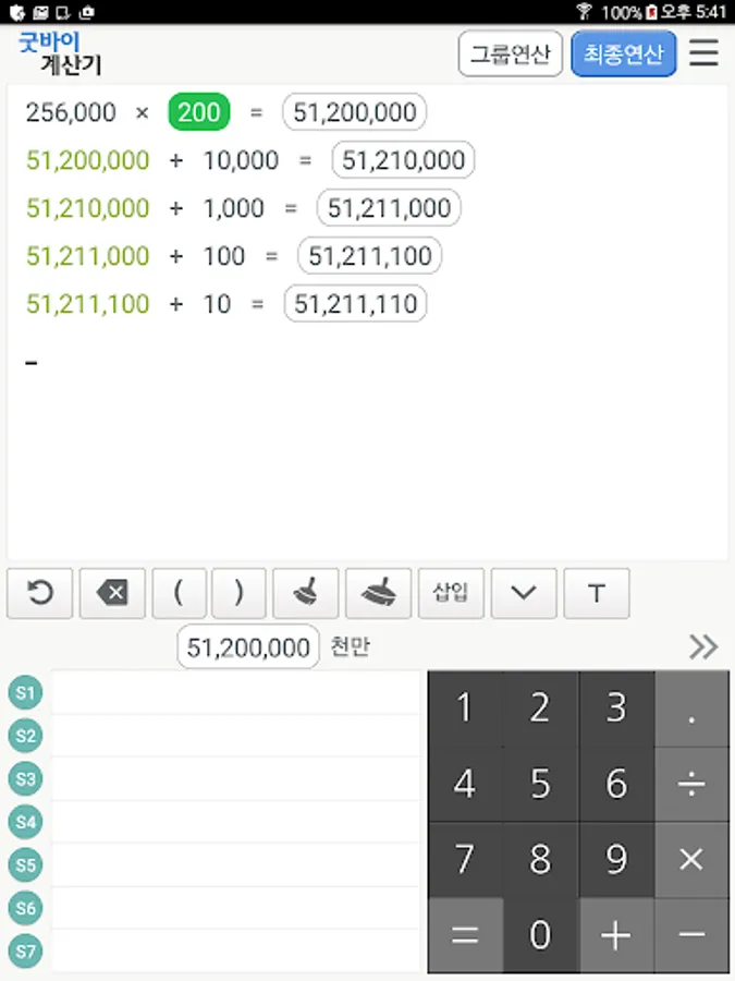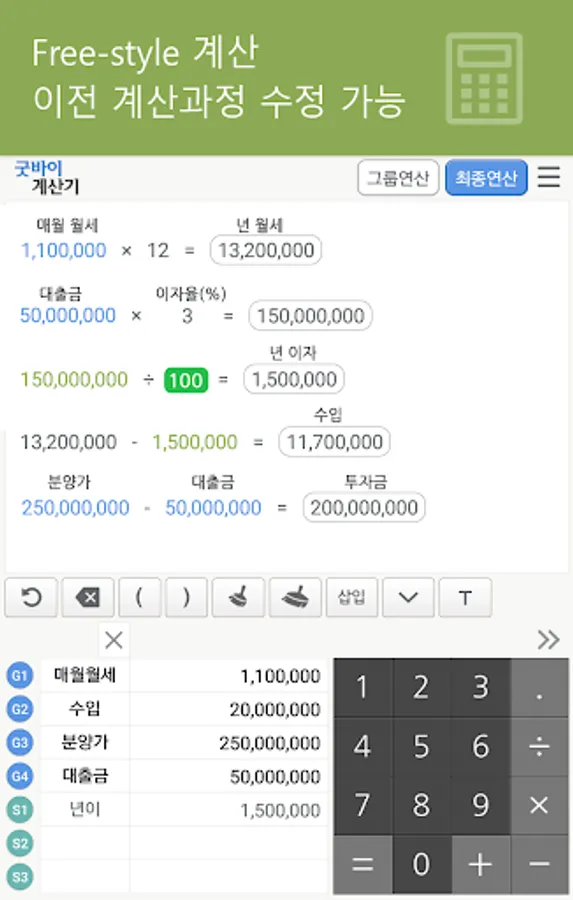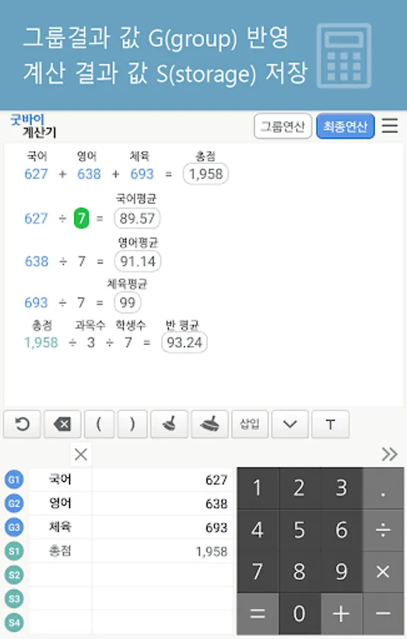 ▶ 그룹별 계산 및 단계별 계산방식이므로 복잡한 괄호를 열고 닫는 수고를 없애드립니다