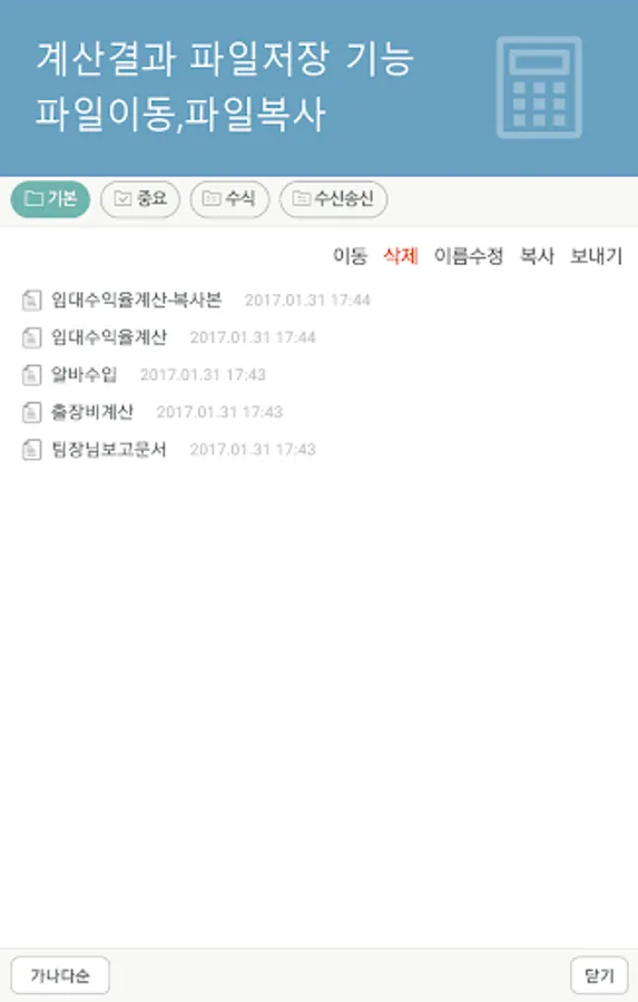 ▶ 계산 파일 기본폴더에서 중요폴더로 이동 및 파일복사, 파일명 수정 기능