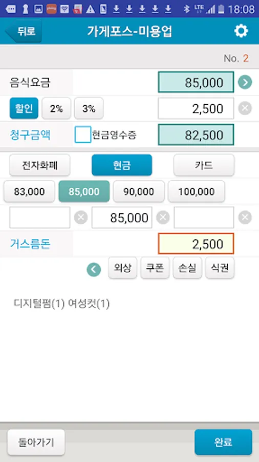 ■테이블 이동 ■외상수금 및 예치금(선불금)입금 기능 ■화장품판매