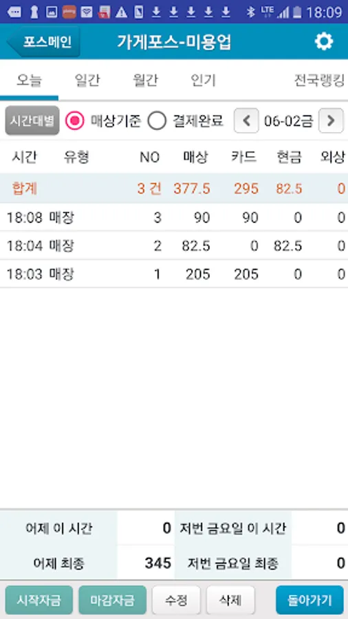 ■현재시간 누적매상액을 어제 동일한 시간과 지난주(같은 요일) 동일한 시간과 비교 ■신용카드 현금영수증 순수현금 전자화폐 등 결제수단별 집계 기능
