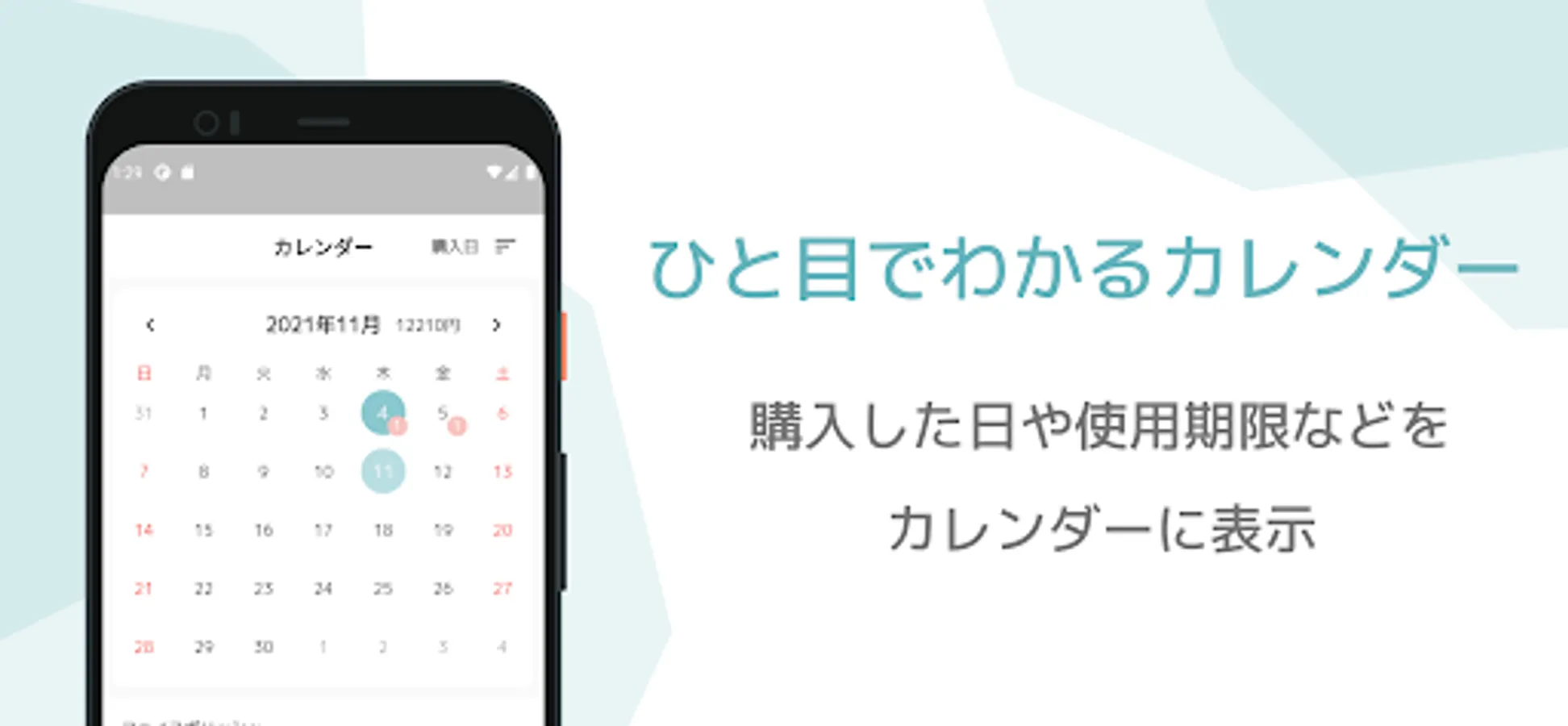 * The calendar function of [mycos] lets you know the purchase date, opening date, and expiration date at a glance!