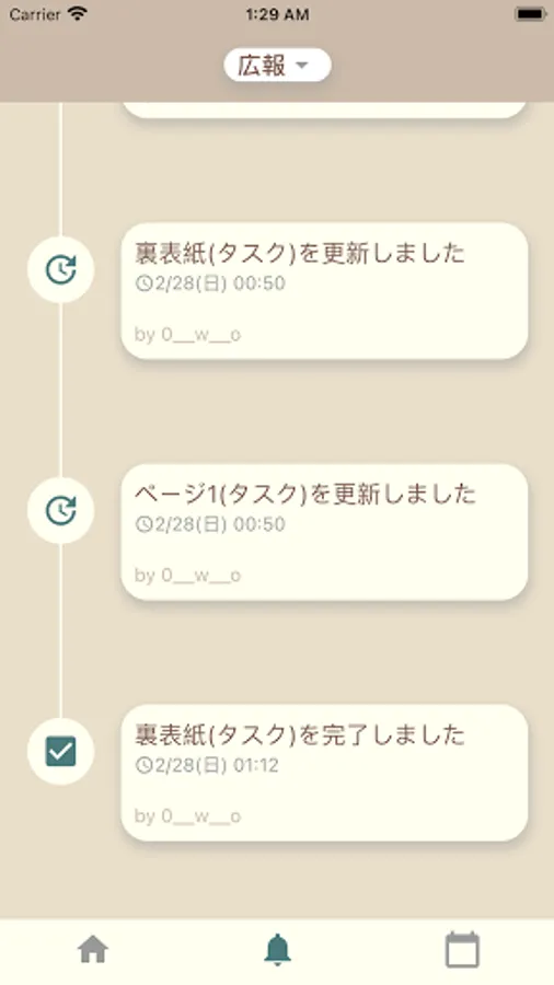 You can see at a glance various actions such as creating and editing tasks, completing tasks, and joining members!