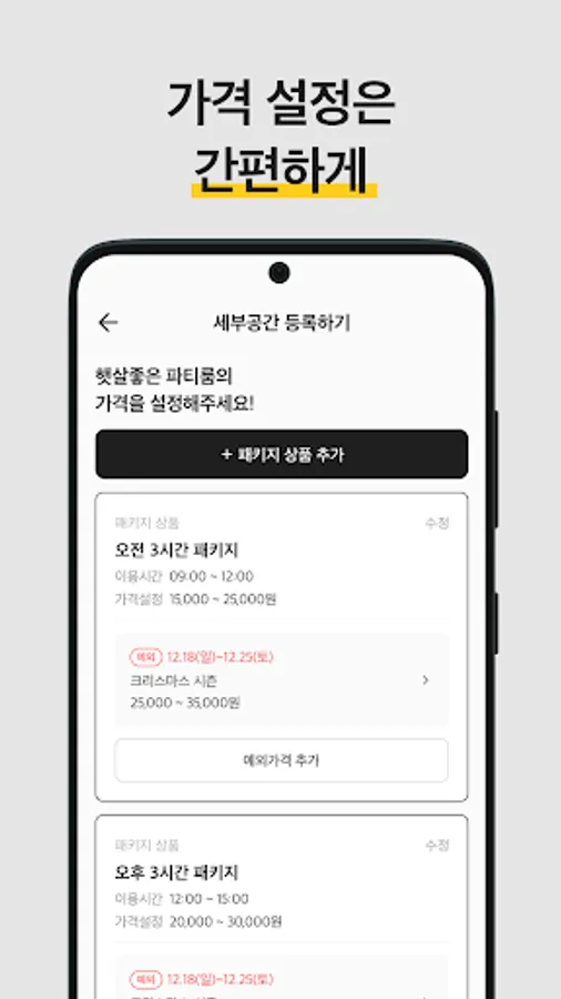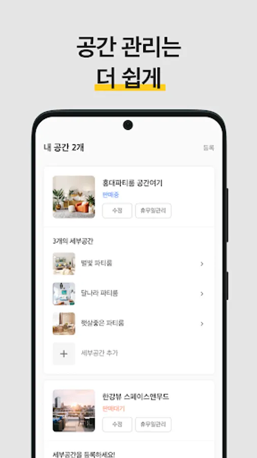 - According to the convenience of the host, you can register the space product by selecting the package rate or the hourly rate.